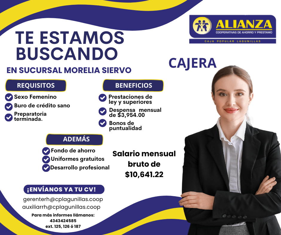 ¿Te interesa alguna vacante? ¡Forma parte de la familia Alianza Caja Popular Lagunillas!