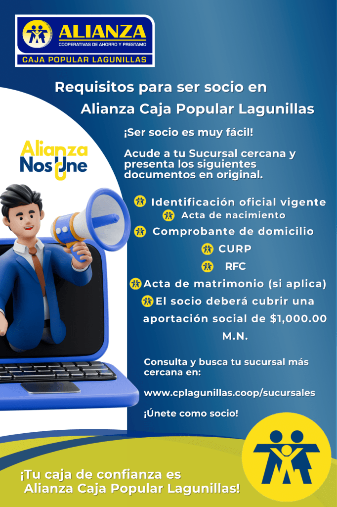 Acude a tu Sucursal Alianza Caja Popular Lagunillas más cercana y presenta los siguientes documentos en original.